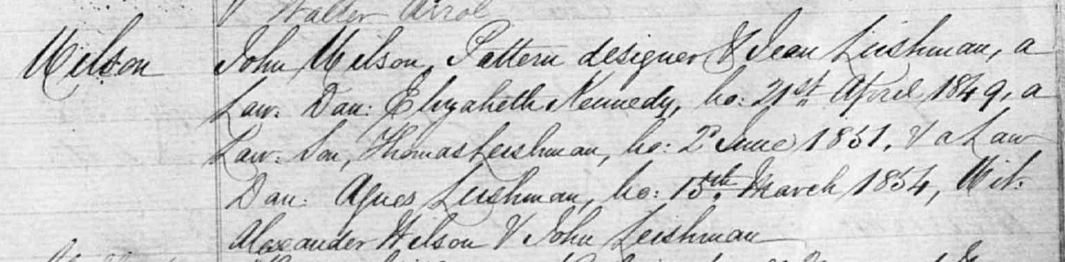 This page is within a frameset. View the entire genealogy report of Wilson families, or surname index of Wilson pedigrees or report summary Wilson heritage from 'Beath and Tait Ancestor Tree 2016'.