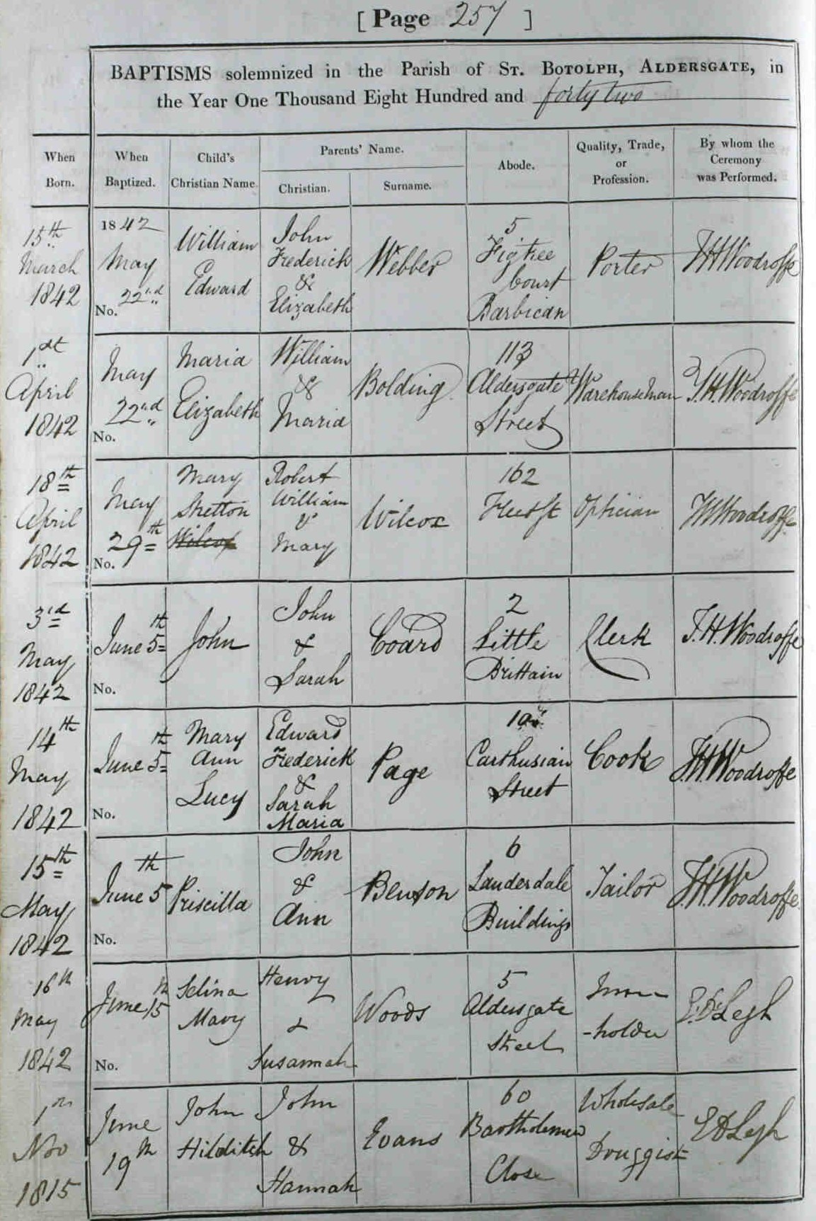 - b.16 May 1842 in Aldergate St, London, England d.Dec 1906 in Christchurch, Hampshire, England