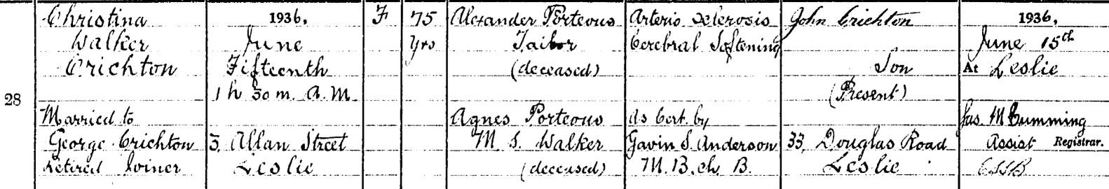 This page is within a frameset. View the entire genealogy report of family Alexander Porteous & Agnes Walker, or surname index or report summary.