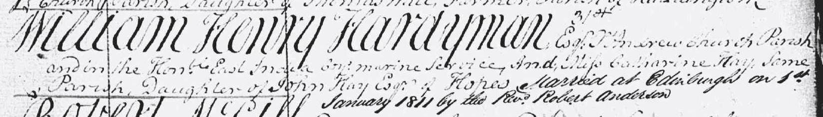 02/07/1814 HARDYMAN JOHN HAY WILLIAM HENRY CAPTAIN HARDYMAN CATHARINE HAY FR464 M Edinburgh EDINBURGH CITY/MIDLOTHIAN 685/001 0410 0358 VIEW (PAID)