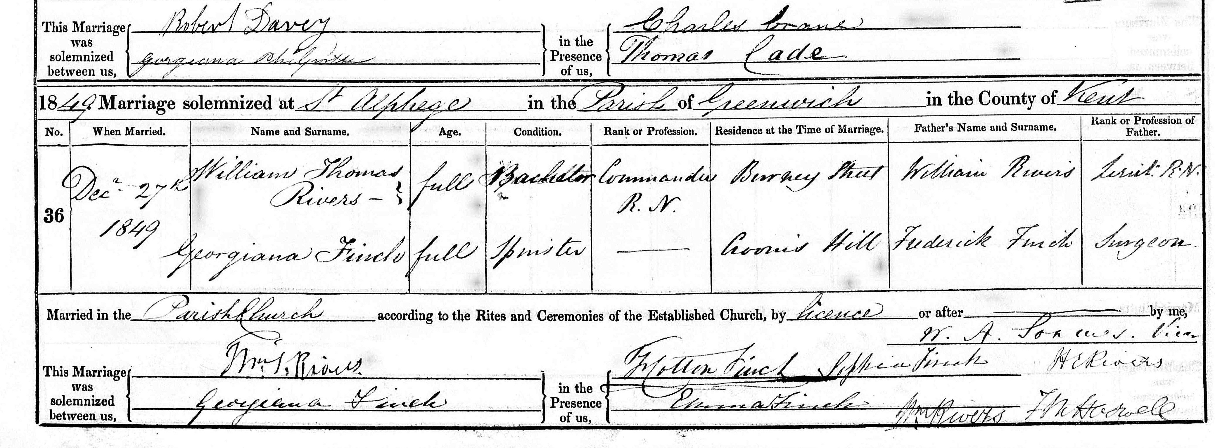 Capt. William Thomas Rivers RN & Georgiana Finch
