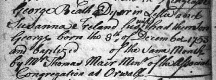 08/12/1753 BEATH GEORGE GEORGE BEATH/SUSANNA IRELAND FR112 M Leslie (Fife) /FIFE 444/ 0010 0259 VIEW (PAID)