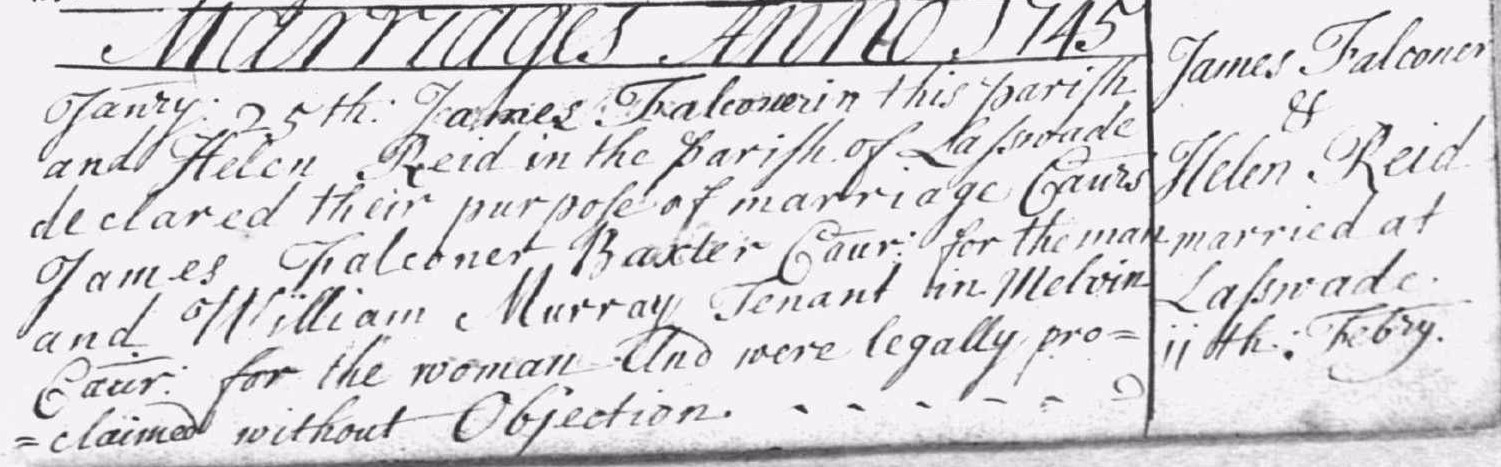 Marriage: 11 FEB 1745 Lasswade, Midlothian, Scotland