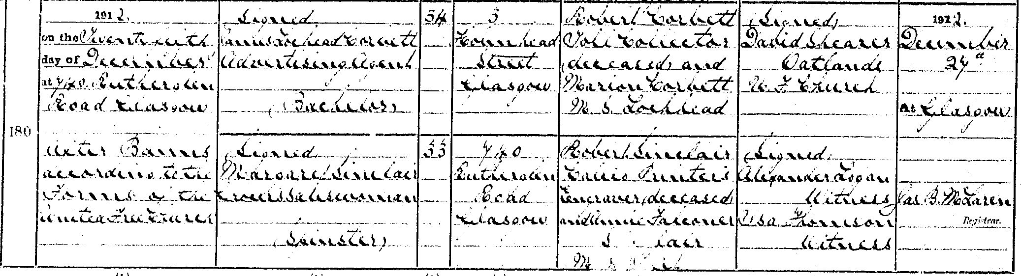 This page is within a frameset. View the entire genealogy report of family James Lochhead Corbett & Margaret Sinclair, or surname index or report summary.