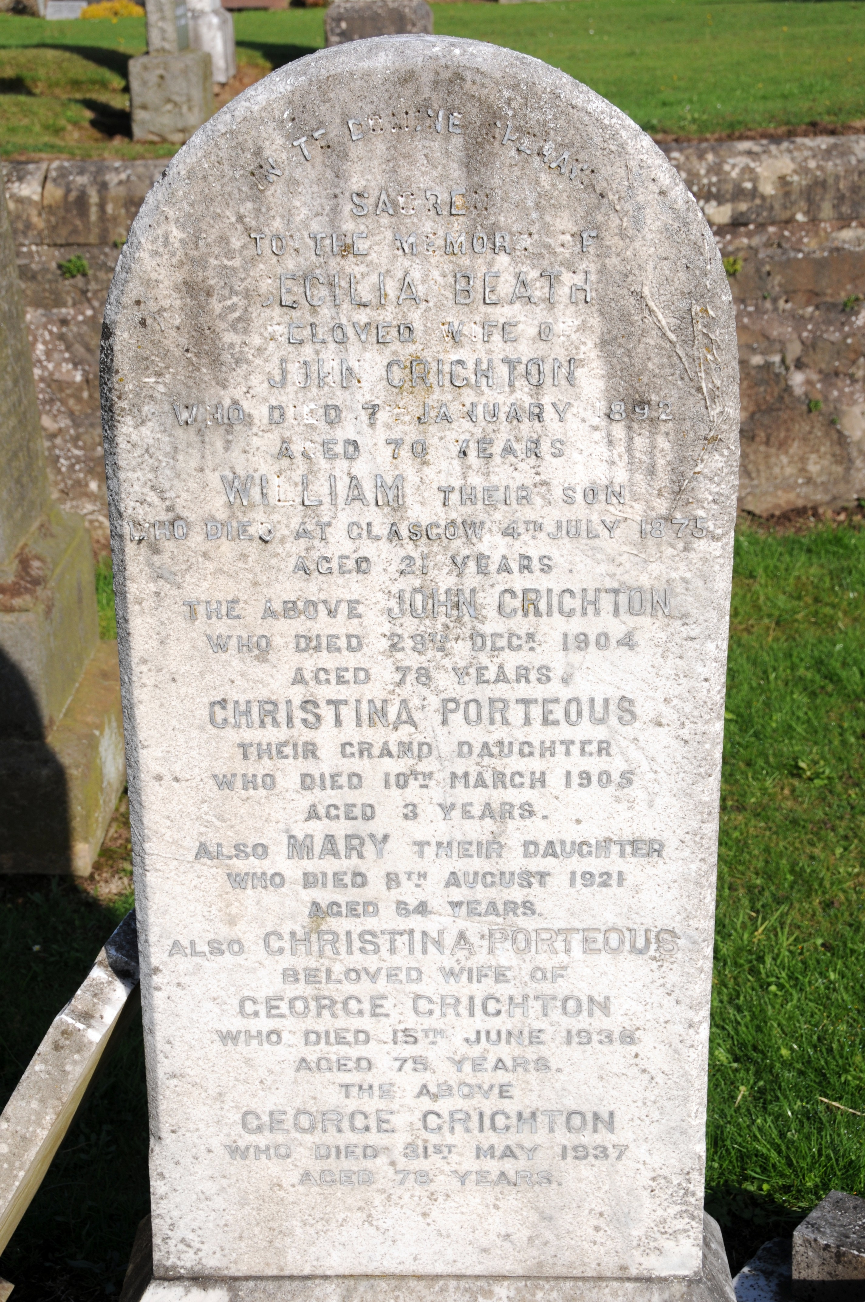 This page is within a frameset. View the entire genealogy report of family John Crichton & Cecilia Beath, or surname index or report summary.