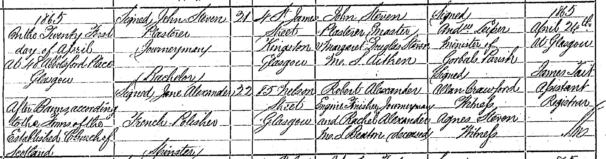 This page is within a frameset. View the entire genealogy report of family John Steven & Jane Alexander, or surname index or report summary.