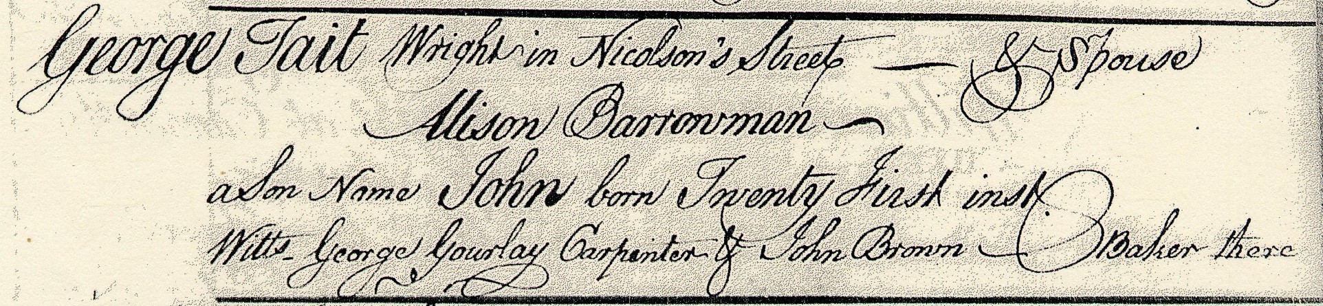 Parents John Tait (Millwright) and Ann Tait (Falconer)