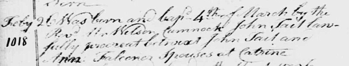 11/05/1801 TAIT ALEXANDER JOHN TAIT/AGNES FALCONER FR346 M SORN 613/00 0002 No Image