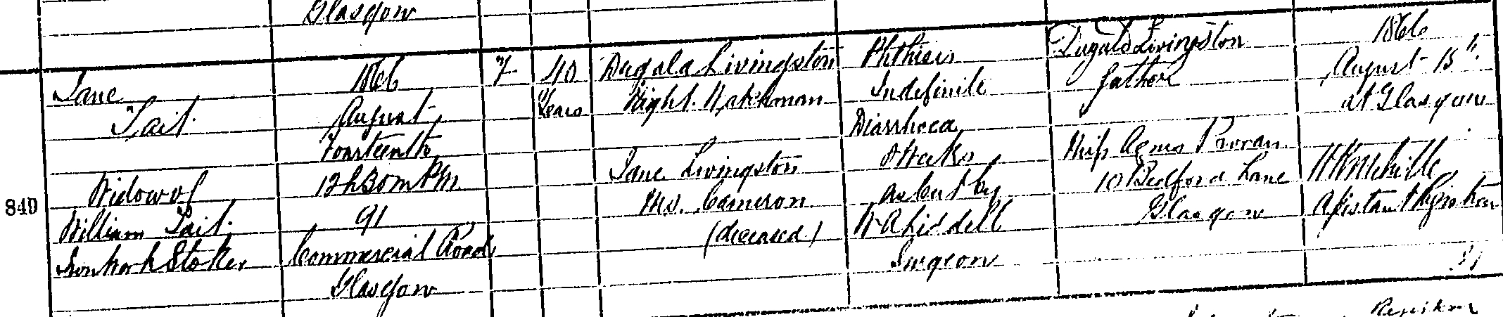 1857 TAIT WILLIAM LIVINGSTON JANE TRADESTON GLASGOW CITY/LANARK 644/09 0011 VIEW (PAID)