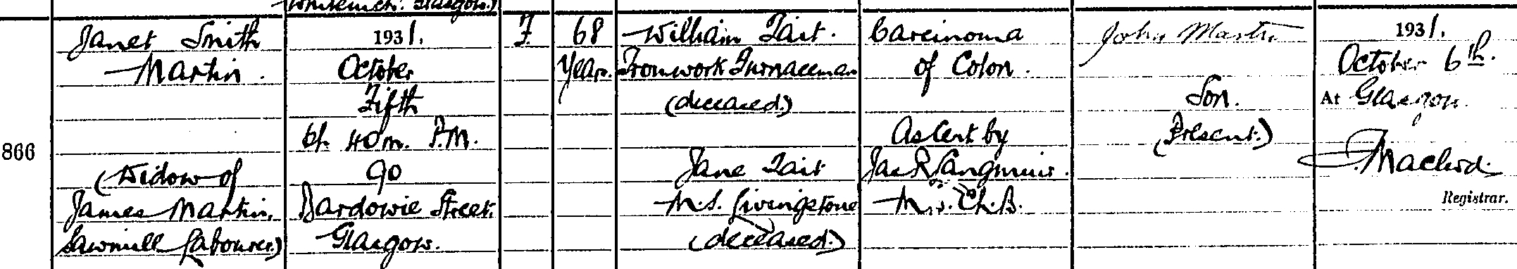 Mother's Name: Jane Tait