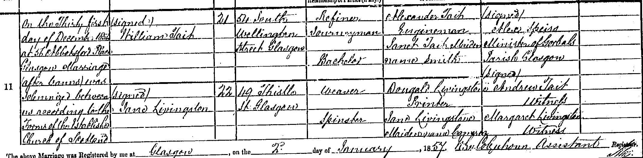 Spouse: JANE LIVINGSTON Marriage: 31 DEC 1856 Tradeston, Glasgow, Lanark, Scotland