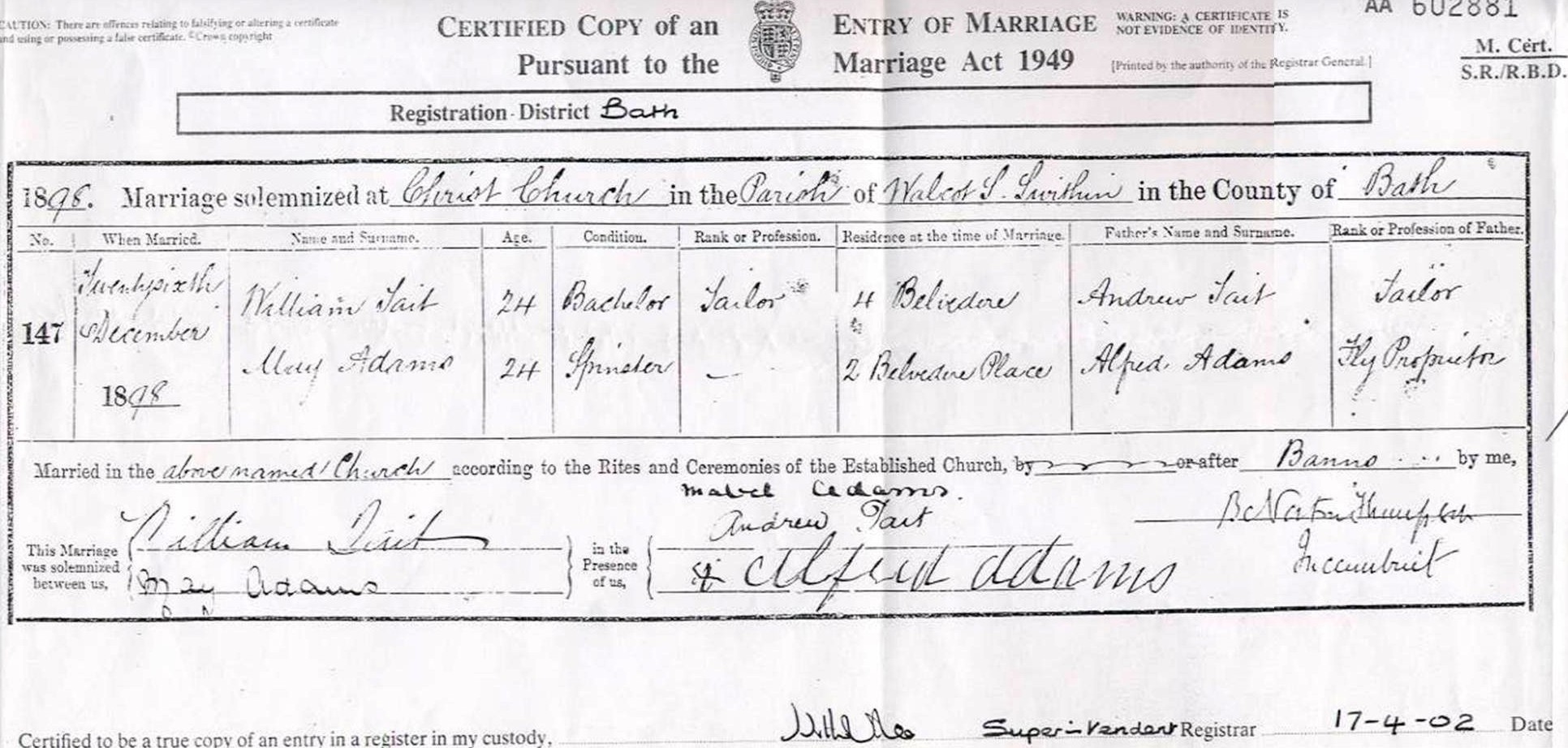 TAIT William 26 Walcot - First Series Bath WL1/49/002