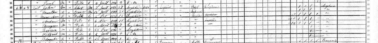 Dimensions: 1612x184 pixels  (0.29 MegaPixels in total) Size: 139KB 150dpi 24 bpp, source file: C:\Pictures\John &Martha Tait 1901 census Canada extract.jpg