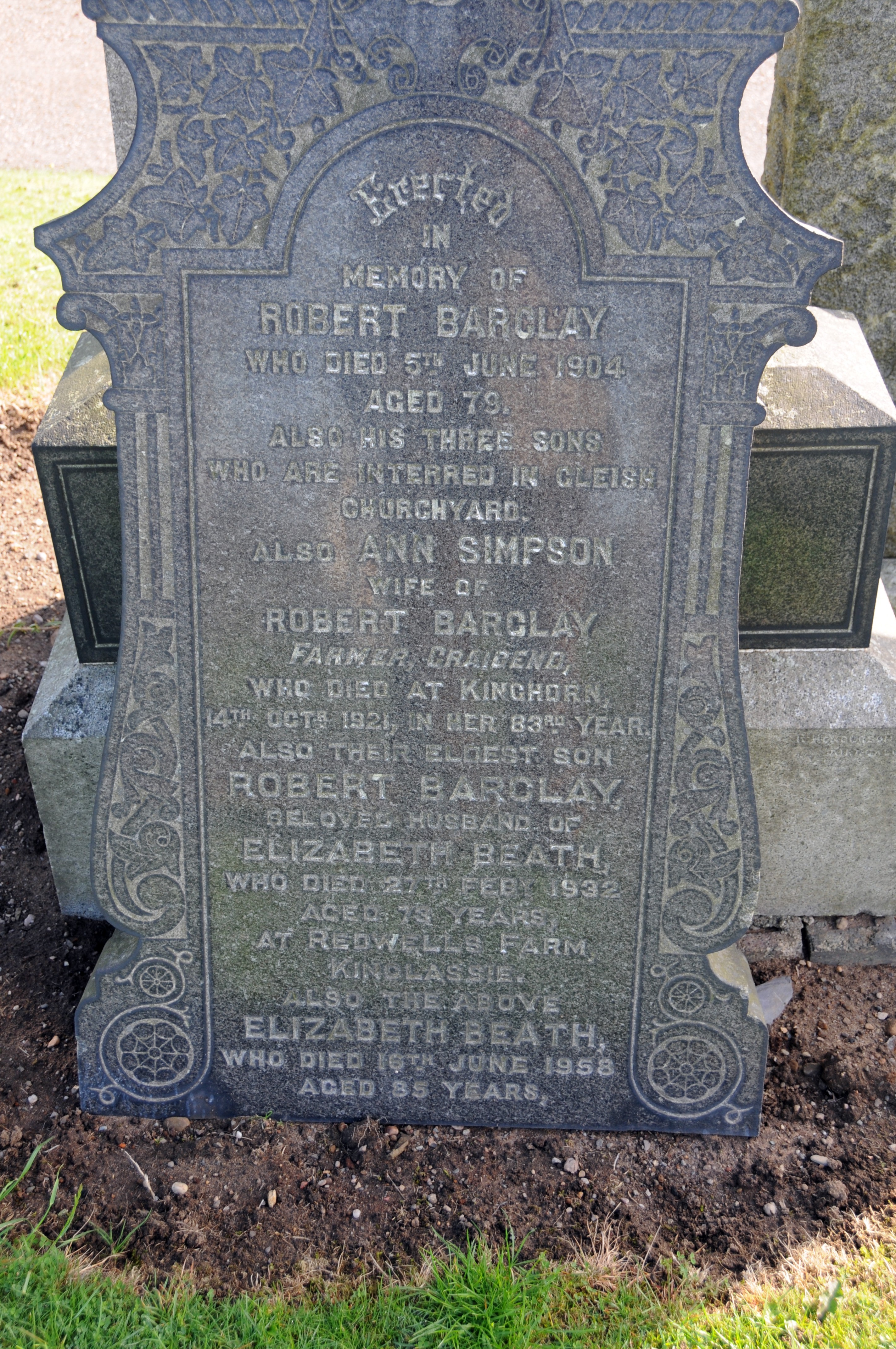 Picture Elizabeth Beath & Robert Barclay headstone 4