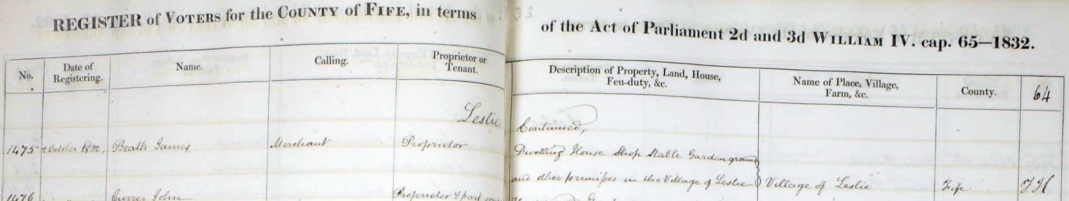 Picture James Beath voters list 1832